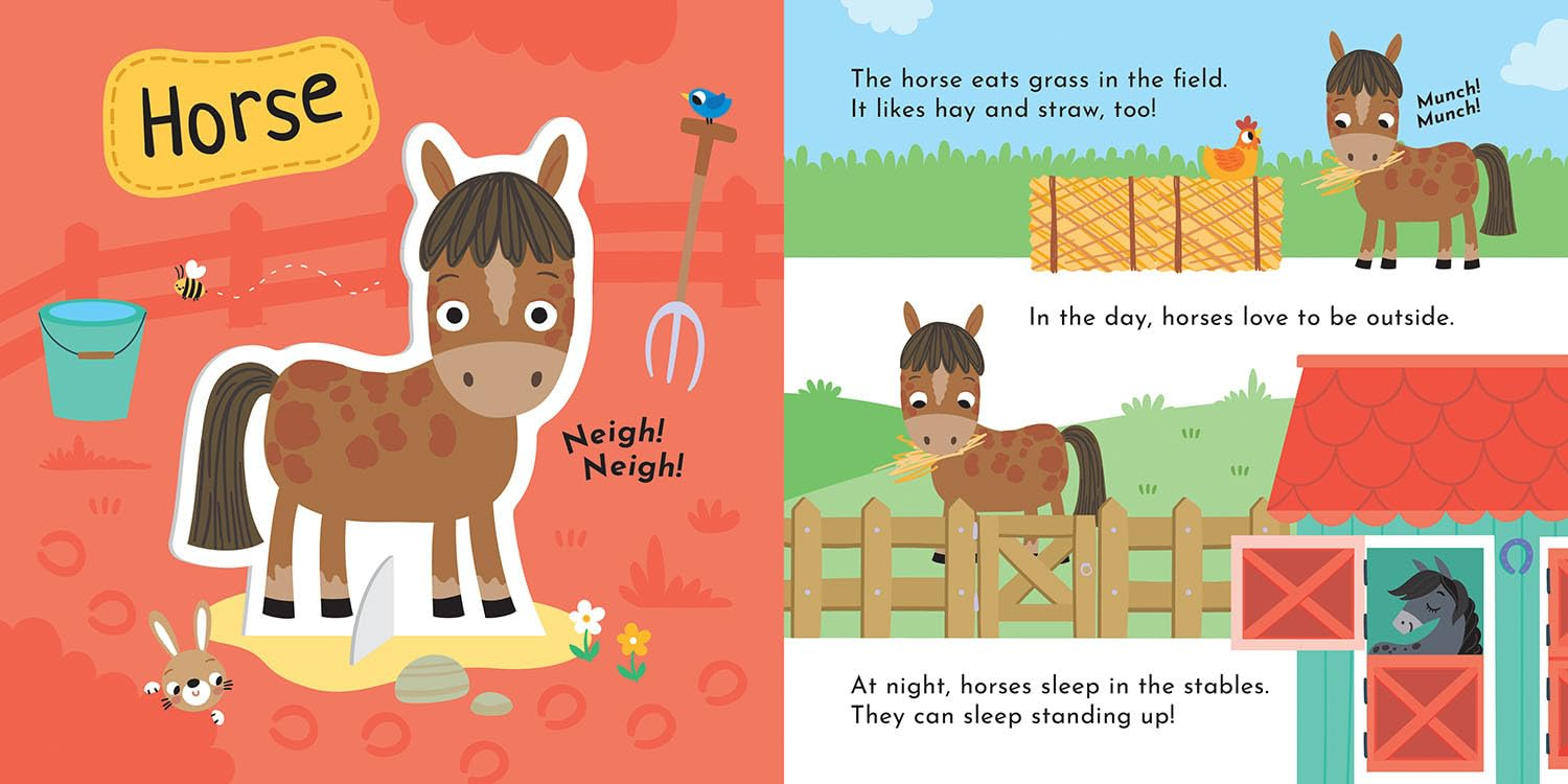 Pregătește-te să construiești și să te joci la fermă! Modul perfect de a dezvolta imaginația, acest kit conține 30 de modele robuste din carton, care sunt foarte ușor de asamblat pentru copiii mici  pentru a crea un set fantastic de joacă pentru fermă. De la un fermier și tractorul său până la o colecție mare de animale, există multe de făcut și de jucat imediat, inclusiv un simplu covoraș de joc puzzle cu două fețe care se potrivește perfect. În plus, există o carte distractivă de 32 de pagini cu informații despre fermă, care conține toate modelele din kit și peste 50 de informații pentru a descoperi, învăța și inspira jocul creativ